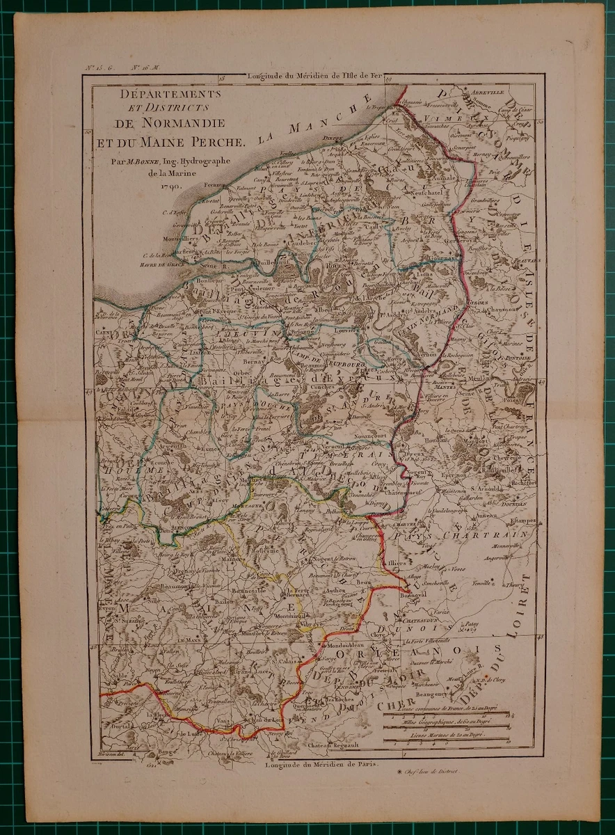 1790 DATED RIGOBERT BONNE MAP ~ DEPARTMENTS AND DISTRICTS OF