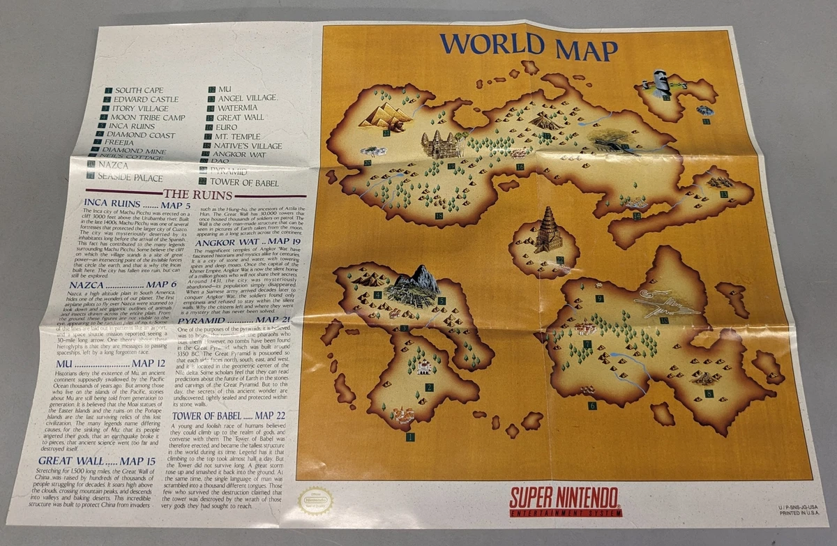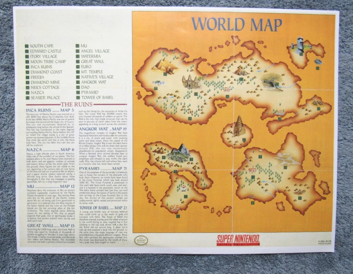 Super Nintendo SNES Illusion of Gaia World Map Poster Enemy List