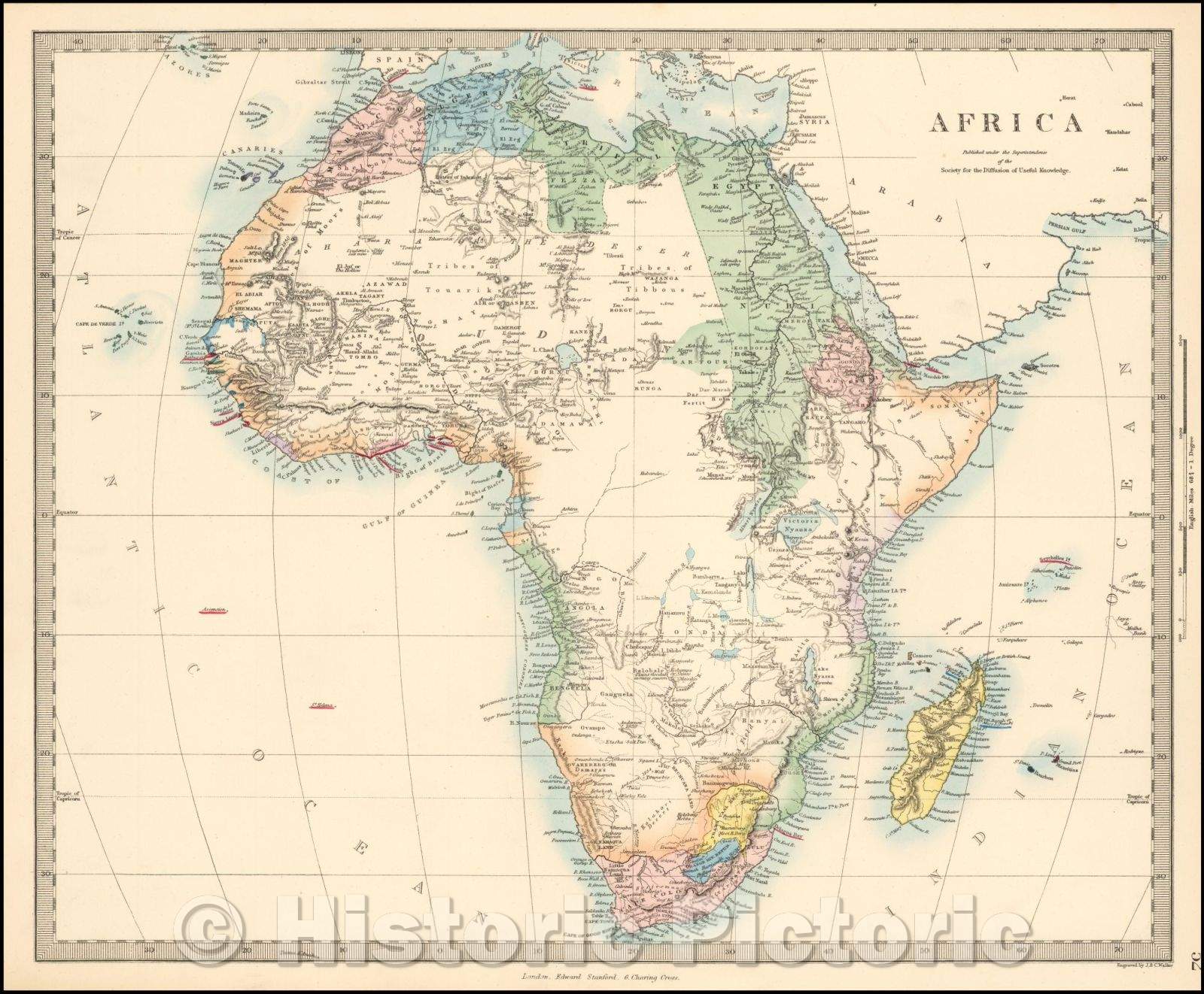 Historic Map Africa, 1860, SDUK Vintage Wall Art Historic