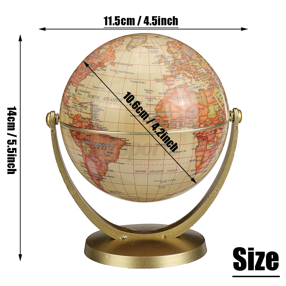 4.5” World Globe with Stand Earth Ocean Rotating World Map