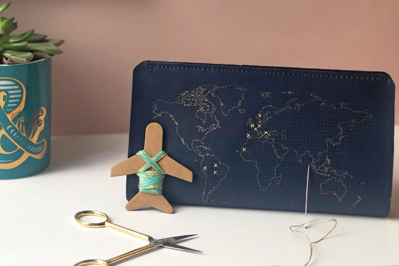 Stitch Where You’ve Been Travel Wallet Luxury Navy with gold